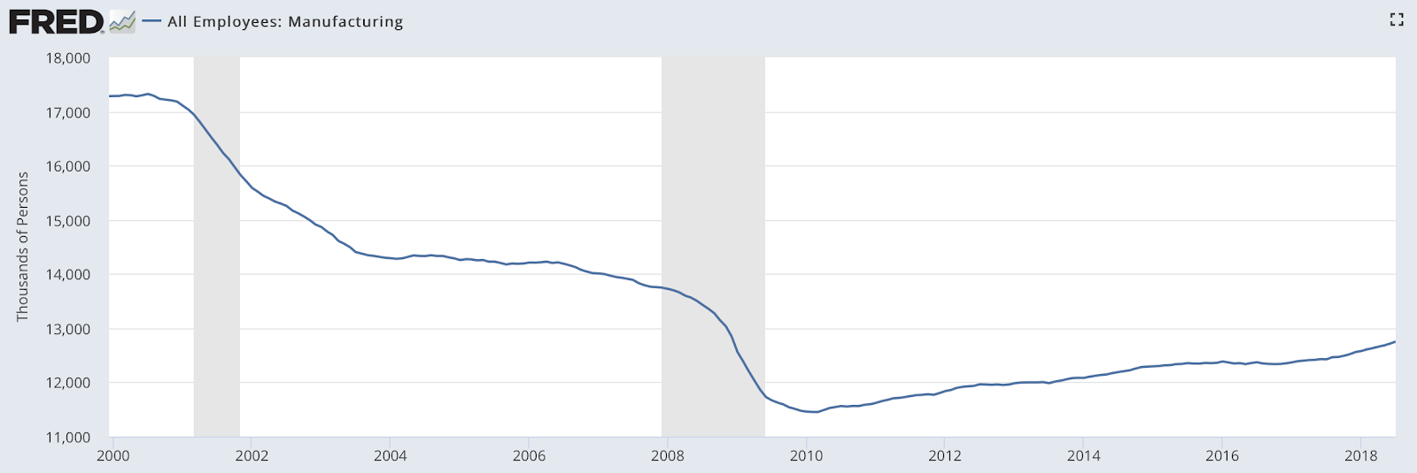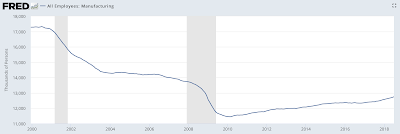 2.) throughout the year before the 2016 presidential election, the economy was improving with unemployment dropping and manufacturing employment has increased as shown on this graphic: