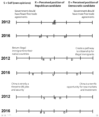 Here is a graphic which shows the shift on the three key aspects of the outside world for Democrat and Republican candidates between 2012 and 2016: